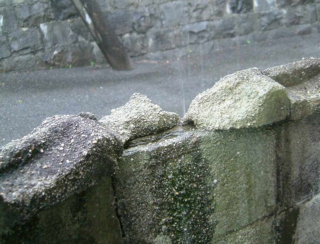 ☆ 小屋の屋根からの雨足でコンクリートブロックが激しく