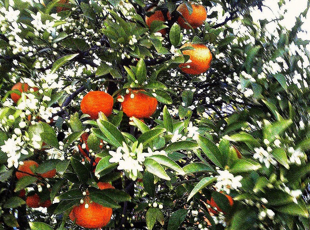本当に蜜柑と花が一緒に見られるのはめずらしいですね、