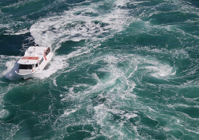 鳴門の渦潮に揉まれる観潮船渦の激しさが伺える