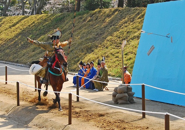 ☆ 流鏑馬の射手が馬走中に発する「矢声」、陰(いん)陽(よう)を表す。