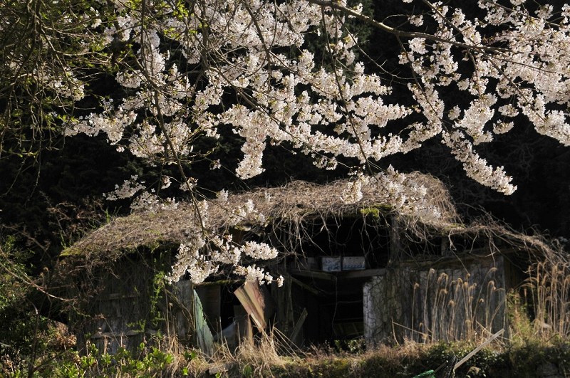 ひなびた廃屋を桜が染めて良い雰囲気を出していい風情です。
