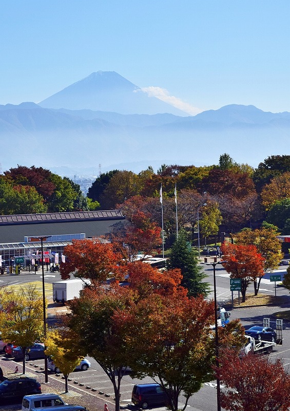 目前の紅葉と遠くの富士山とのコントラストが素敵ですね