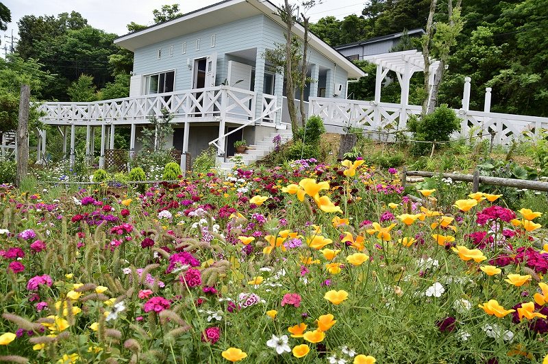 白亜の館綺麗ですネ。お花畑が良いですね。