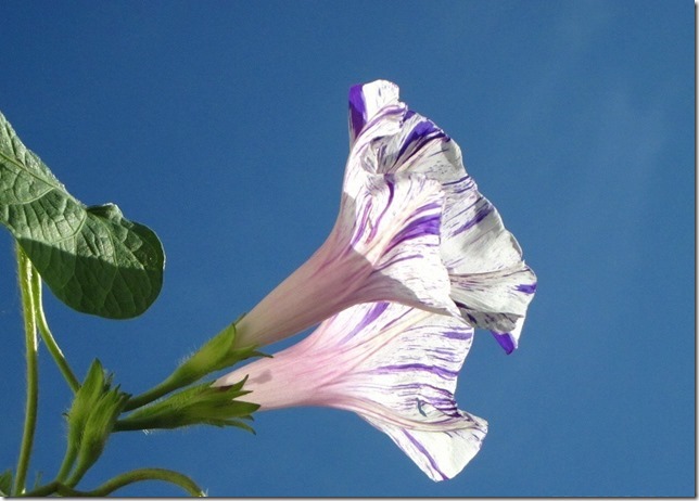 澄みきった青空に涼しげなアサガオですね!元気をもらいました。
