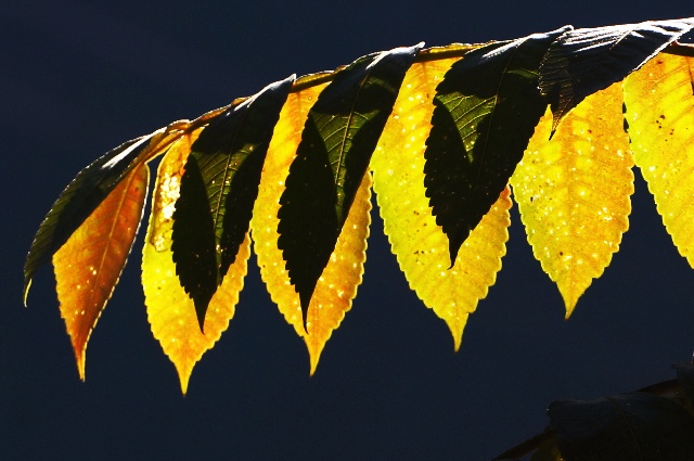 逆光を浴びた葉の色のコントラスト”キレイ” 絵を見てるようで素晴らしいです。