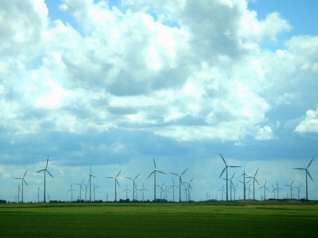 (夢一夜) グリーンの中に今ちょっと世間を騒がせている風車、遠距離からの撮影でしょうか?