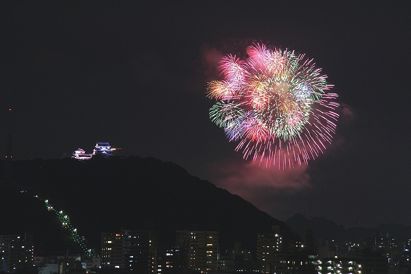 写太郎 撮影場所が良いところですね、天守閣と花火のコラボいいね!