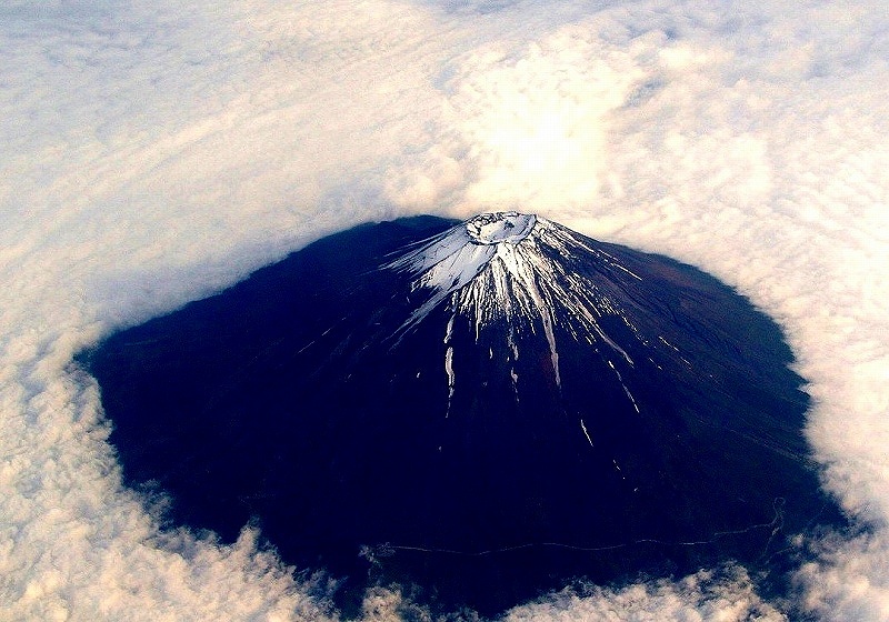 Yana  雲海の中に見える山が、上空からみると大きなオッパイのように