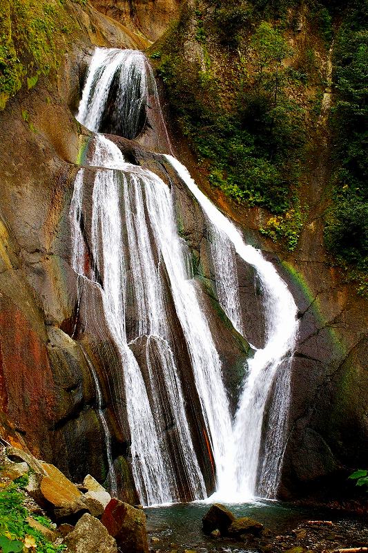 ☆ 羽衣の滝 水量たっぷり水の帯が岩肌を滑っています。