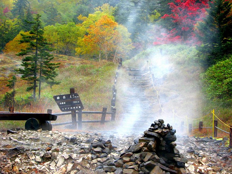 ☆ 大雪高原温泉、地熱で湯煙が勢いよく上がっていました。