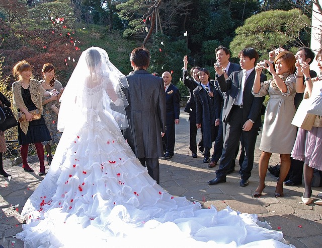 ☆ 教会を出ると、友人達が花びらを投げて祝福します。