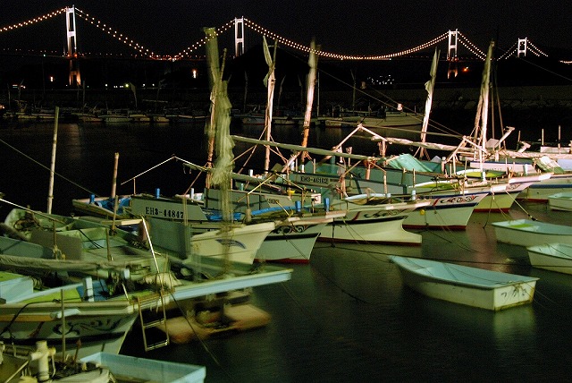 * 来島海峡大橋のライトアップを背に。