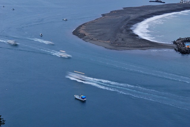 ☆ 四万十河口で先を争ってしらす漁に出漁する船をとらえました。