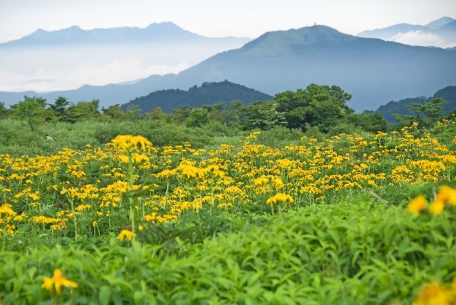 背景の山並み、ほんとにきれいです。高原の雰囲気がよく出ています。