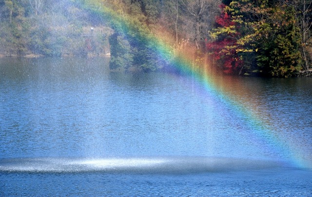 一瞬の出合い、素晴しい光景。バックも紅色。