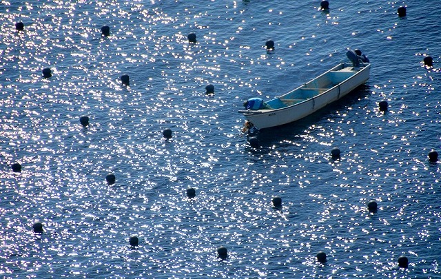 ☆ 鳴門の海でわかめ取りをしている小舟を見つけました。