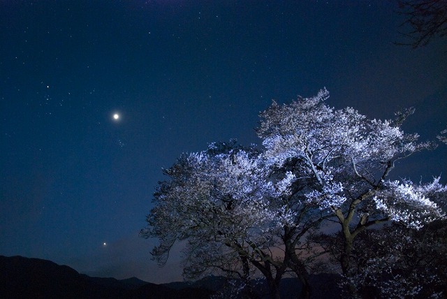 金星・木星と周りの小さな星までクッキリと輝いて桜と相まってきれいです。