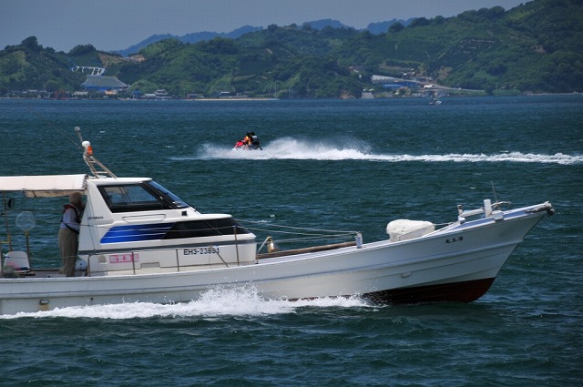 ☆ 梅雨の晴れ間を待ちかねたようにモータボートが颯爽と走っていました。