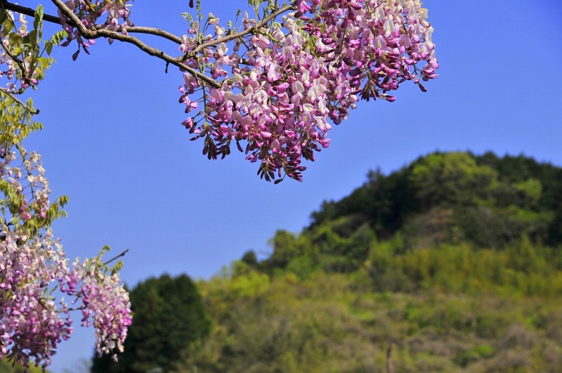 ☆ 玉川ビューパークに咲く藤の花と背景に山を入れて撮す。
