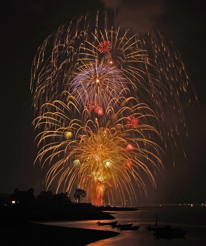浜辺と花火、コントラスト素晴らしい。よく撮られました。