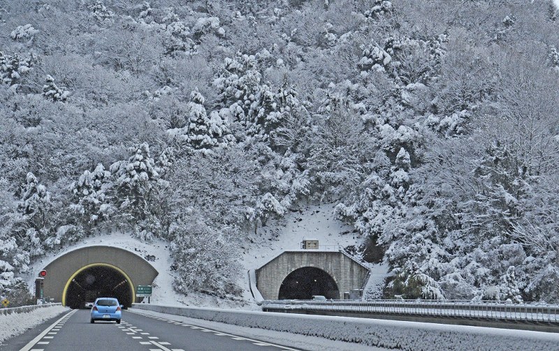 車中からの撮影のようですが、雪道特に高速での運転は