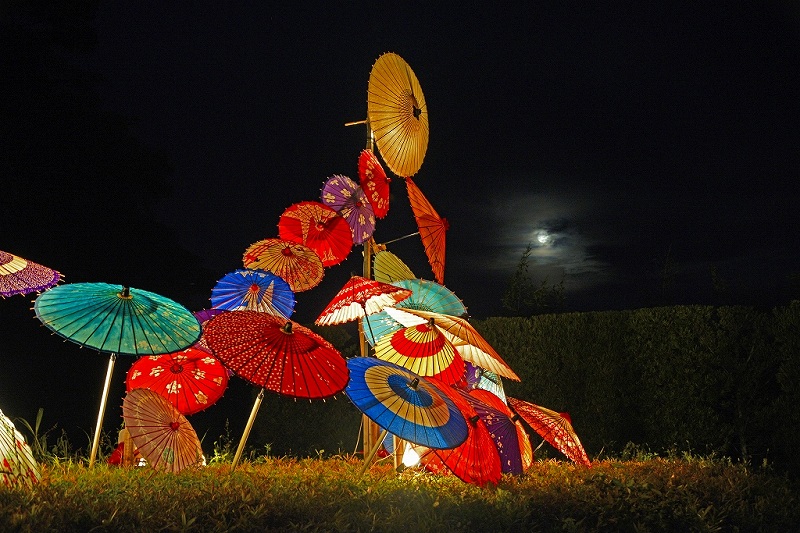傘のアートが引き立てますね。月がもう少し大きく見えたら。
