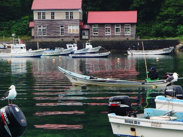 ☆ ウニ漁を見ていると小舟が駆け抜けて行きました