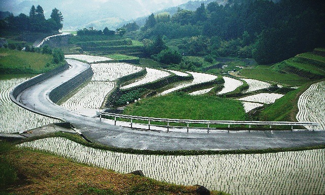 | (夢一夜) | 棚田が、湾曲に水の輝きも美しい | |