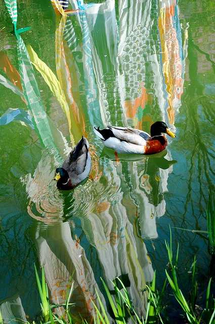 池の鯉のぼりもきれいに写っていて、不思議な感覚にさせられます。