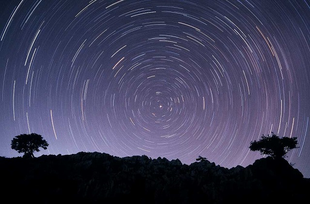 美しい星空、円形に光る星どのようなシャッターチャンスか興味が湧いてきます。