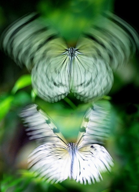 ☆ 広島の昆虫館では、年中蝶々が見られます。おおごまだらの求愛風景です。