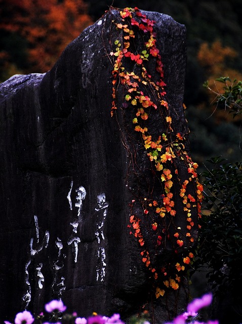 ☆ 意思の句碑につたが紅葉していました。
