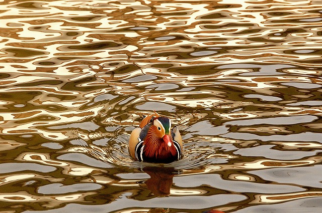☆ キレイな水面に美しいおしどりがおよいでいます。(神戸花鳥円)