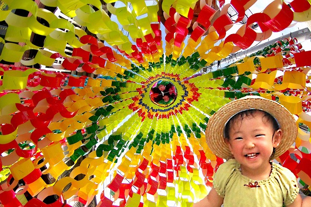デジトル 七夕飾りの中へ子供を連れ込んで・・・、いい写真になりました。