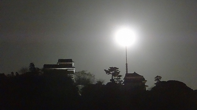 月とTV塔でのランプが城を照らしだす幻想的な雰囲気イイね!!
