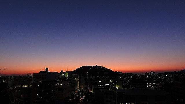 ☆ 真っ赤な夕焼けもいいですが.もう少し過ぎたグラデーションの空もきれいです。