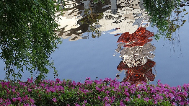 ぼっちゃん 鏡の様な水面に、揺らいで映る影、不思議な光景を見事に撮られています。