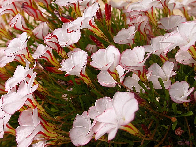 ☆ オキザリスバ−シカラ− 紅白のねじり飴のような花の付け根を撮ってみました。