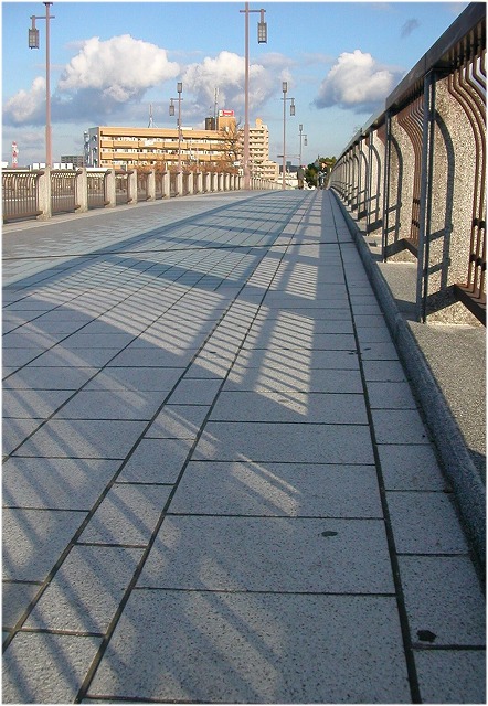 ☆ 欄干の影が歩道にくっきりと写っていました。