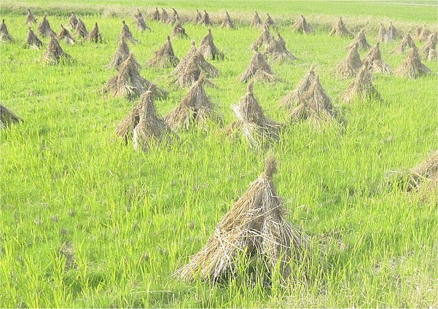 ☆ 穭田に藁帽子、珍しい光景に出会いました。