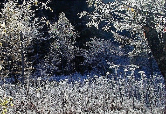 樹氷の輝きが宝石を散りばめたように綺麗です。