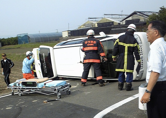 ☆ 目の前で車が横倒し。中には人が。気をつけましょう。