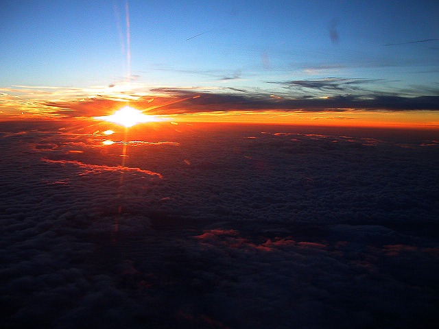 「雲海の夕日」空と海のそして夕日とのコントラストが美しいですね