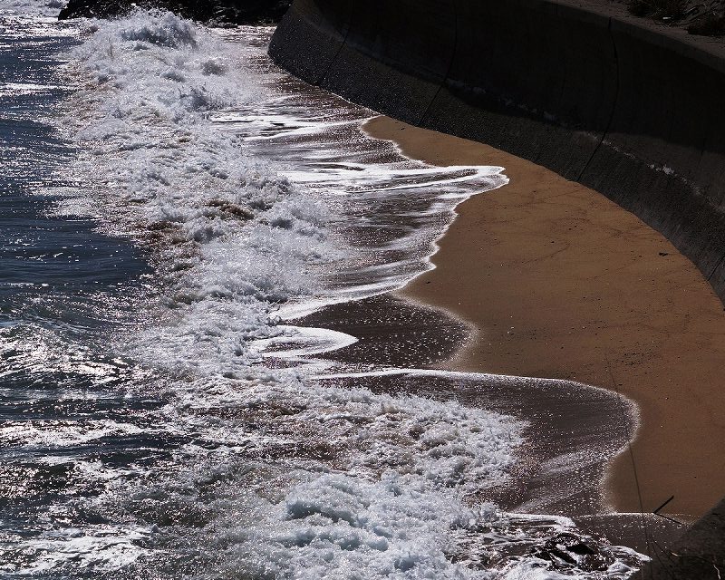 砂浜に、描かれた波の曲線を見事に撮られていて、すばらしいです。